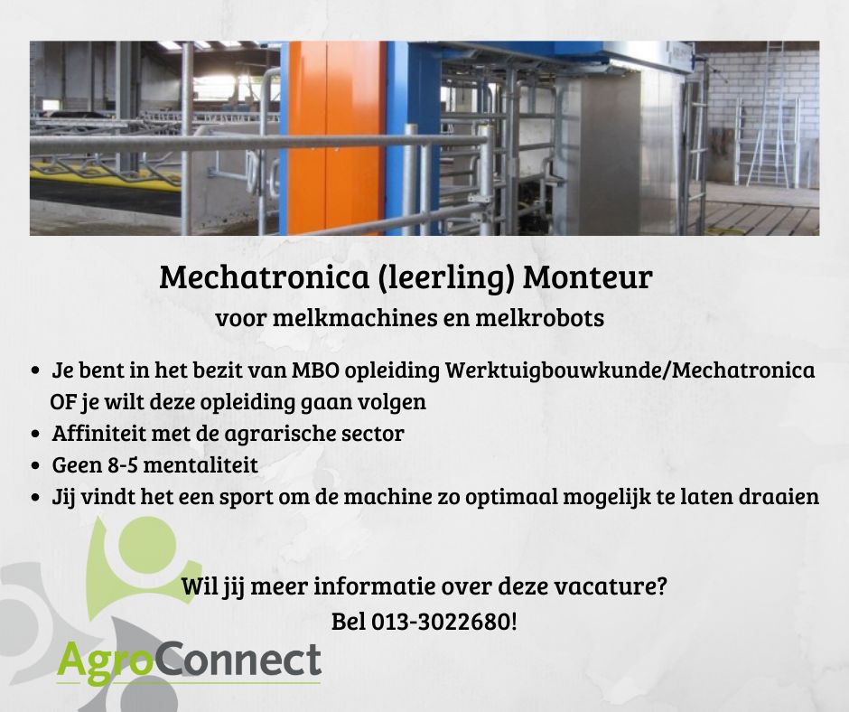 Leerling monteur werktuigbouwkunde/mechatronica (BBL) voor melkmachines en melkrobots
