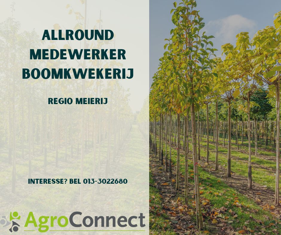 Voor een boomkwekerij in de Meierij zijn wij op zoek naar een fulltime medewerker. Houd jij van aanpakken? Heb je
